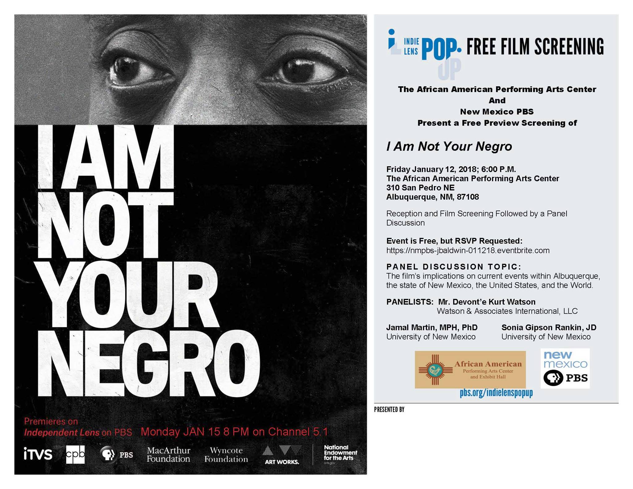 Albuquerque — January 12, 2018 “I Am Not Your Negro” Screening & Discussion
