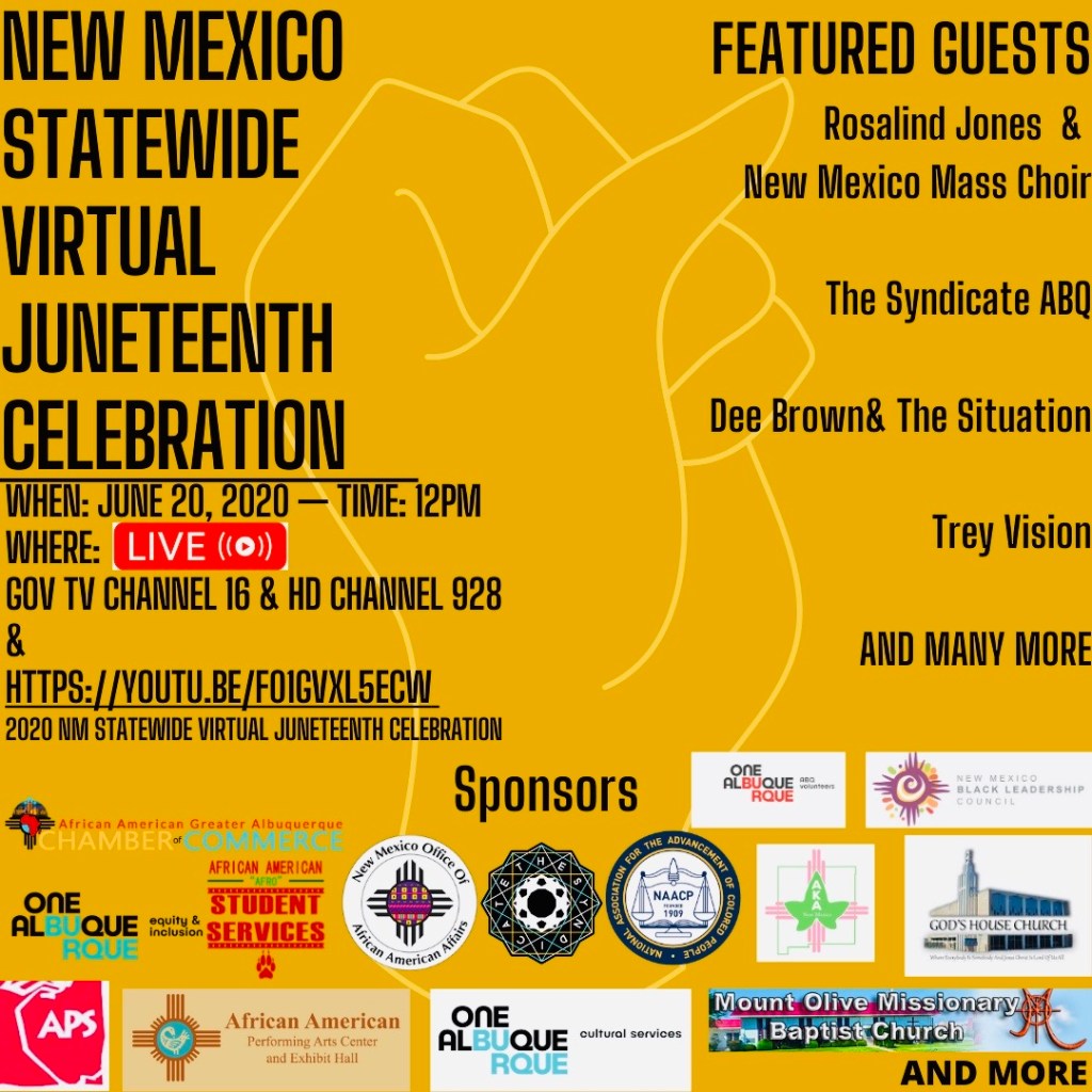 2020 NM STATEWIDE VIRTUAL JUNETEENTH CELEBRATION (https://youtu.be/F01gVXL5Ecw)